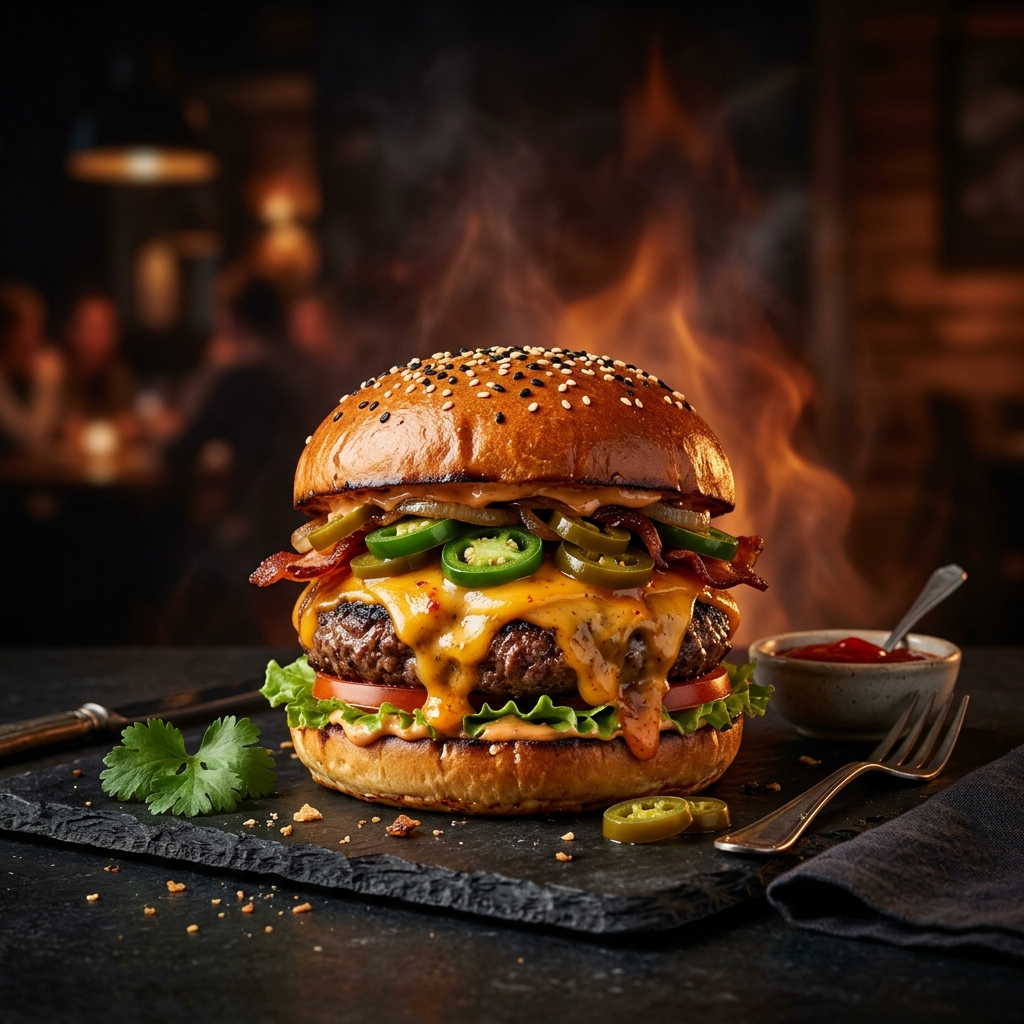 A fusão definitiva do sabor urbano. Pizzas artesanais intensas e burgers gourmet que desafiam o seu paladar.